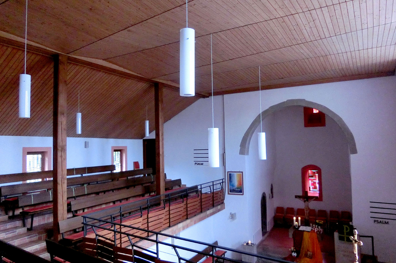 Anfang August 2020 bekam die Martinskirche in Ruppertshofen ihre neue LED-Beleuchtung. Kirchenpflegerin Ellen Schaffert ist sehr zufrieden damit: „Es sieht nun viel schöner aus!“ Bei den bisherigen Deckenlampen handelte es sich um große alte Glaskugeln, die zum Teil bereits kaputt und in der Bedienung und Pflege unpraktisch waren: sie seien schwer zu reinigen und leider auch nicht dimmbar gewesen, berichtet Frau Schaffert. Die Möglichkeit zu dimmen ist ein wertvoller Vorteil der neuen Beleuchtung, um zu besonderen Anlässen, wie Weihnachten, eine festliche Atmosphäre zu erzeugen. Herr Schweizer, ein langjähriges Mitglied des Kirchengemeinderats und Betreuer der Baumaßnahme, teilt die Begeisterung von Frau Schaffert. Beide freuen sich darauf, baldmöglichst wieder einen gemeinsamen Gottesdienst mit der Gemeinde zu feiern und dabei die neue Beleuchtung zu präsentieren. Neben den ästhetischen und praktischen Aspekten war die Stromeinsparung ein wesentlicher Grund zum Austausch der Beleuchtung. Alle bisherigen Lampen in der Kirche wurden durch energiesparende LED-Lampen ersetzt.